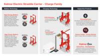 Kalmar FastCharge™. El sistema Kalmar FastCharge™ utiliza estaciones de carga de pantógrafo estratégicamente situadas en su patio para cargar rápidamente su batería durante los periodos de inactividad o de inactividad en su flujo de trabajo habitual, de modo que su straddle carrier pueda permanecer en funcionamiento durante un turno completo. La carga CCS en una estación FastCharge está disponible como opción, si es necesario.