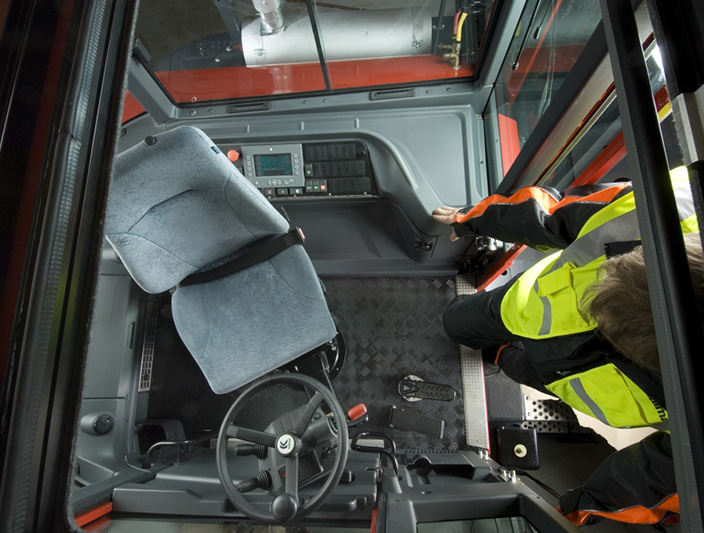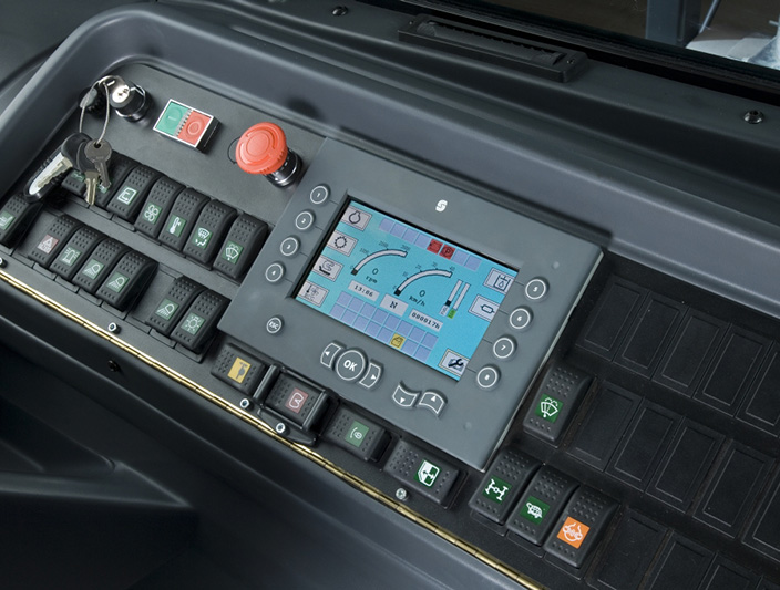 Todos los tractores de terminal Kalmar siguen siendo los únicos tractores del mercado con el avanzado sistema CAN-Bus, que integra todas las funciones operativas en un solo sistema y muestra todos los datos operativos y de servicio en una sola pantalla.